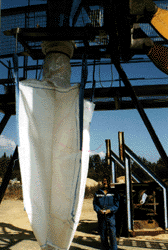 I år räknar företaget med att leverera 15 000 ton. I november kör man igång en andra press och kommer då att dubblera produktionen. - Än så länge är det ingen brist på vare sig kutter eller spån, de råvaror som vi använder, och det kommer det inte att bli även om vi ökar produktionen, berättar Åke Granström. - Vi har planer på att även använda skogsråvara i framtiden. Nu hämtar fabriken det spån som behövs från sågverk i norra Dalarna. Bild: En pelletsäck fylls på 15 sekunder. Låga investeringar