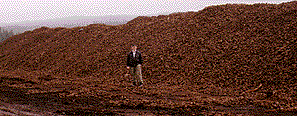 Bild: 1-2 dygns bränslebehov vid närlagret i Hudiksvall.- Det är samma människor som arbetar i bolaget nu som före ägarskiftet. Hudik Kraft drivs efter samma principer som förut. Det som bestämmer priset på värme och el är kostnaderna för produktionen samt kundens alternativkostnad vid val av annan leverantör. Bidrag behövs Kraftvärmeverket i Hudiksvall producearar cirka en tredjedel av tätortens elbehov. Anslutningen är 90 procent, villor undantagna. - För att det ska vara ekonomiskt att ansluta villor krävs det i dagsläget att ett helt område ansluter sig samtidigt, säger VD Lennart Bergman. Och för att det ska vara möjligt tror han att det krävs bidrag. I kraftvärmeverket eldas biobränslen där torv står för den största delen, runt 50-60 procent. Torven är i jämförelse med träbränsle ett energitätare bränsle. Utöver fastbränsle används olja samt tallbäcksolja för att klara spetsarna. "Torv är biobränsle" - Bränslevalet bestäms av vilken prisnivå som för tillfället ligger, säger Lennart Bergman: Alla bioeldade värmeverk är beroende av de skatter som finns på fossila bränslen. Torv och träbränslen kompletterar varandra pris- och volymmässigt, vilket ger leveranssäkerhet. Det är viktigt att torv betraktas som biobränsle och inte beskattas som fossilt! Han fortsätte: I Hälsingland ser vi att både torv och trä kan utnyttjas i framtiden utan att skattepåfund ska störa den balans som idag råder. Bygden skall leva Att både torvbrytning och träbränslen ger jobb på orten är inte betydelselöst. - Vi är beroende av att bygden lever, säger Lennart Bergman. Både Gävle och Sundsvall planerar nya biobränslepannor, och deras upptagningsområde på bränsle kommer att sträcka sig mot Hudiksvall. Än så länge hämtas inte bränsle i skogen. Mellansverige - Träbränslepriset kommer att gå upp, men än så länge har vi "konkurrenskraftigt" träbränsle från industrier, främst Iggesunds pappersbruk och avfallsstationer, säger Lennart Bergman. Det finns också möjligheter att samnyttja produktionsanläggningen genom en pipeline. - Biobränslena har kommit för att stanna, i alla fall i norra och mellersta Sverige. Större städer längst söderut kan däremot få inrikta sig på förädlade biobränslen eller ett annat alternativ. Av Petter Palmgren, text & bild | ||
