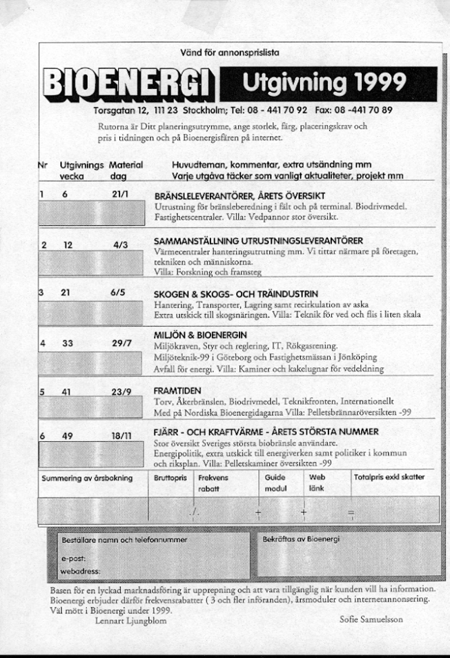 1999 för tidskriften Bioenergi